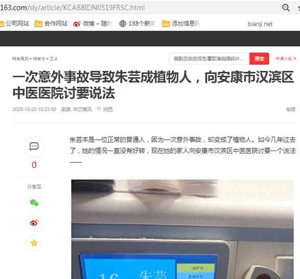 朱芸本是一位正常的普通人,因为一次意外事故,却变成了植物人。如今几年过去了,她的情况一直没有好转,现在她的家人向安康市汉滨区中医医院讨要一个说法——