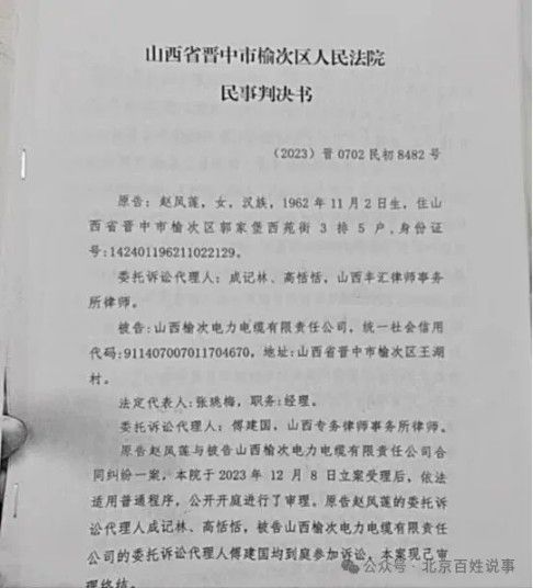 榆次区人民法院经过公开审理(注:主审法官贾军涛),于2024年2月5日,依法做出(2023)晋0702民初8482号判决: