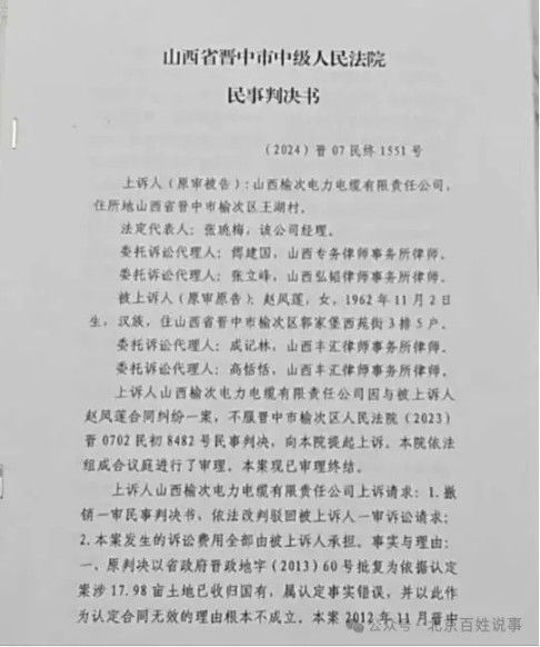 2024年5月15日,晋中市中级人民法院做出(2024)晋07民终1551号终审判决: